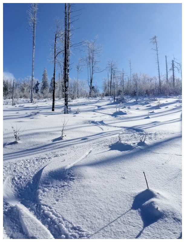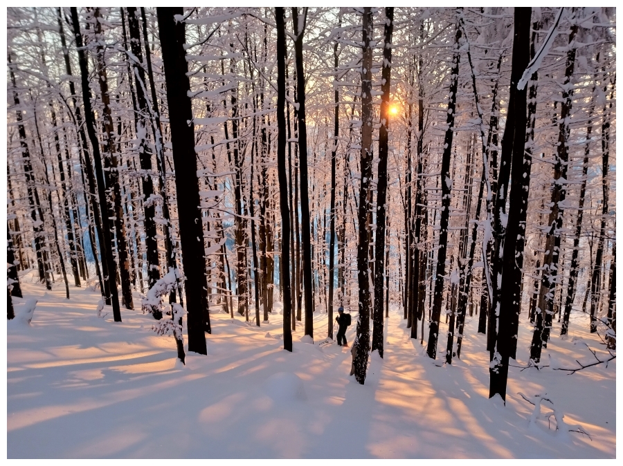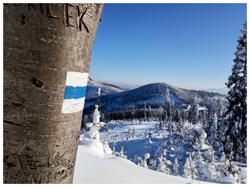 Poniedziałek 6.03: Rycerzowa. Start z Soblówki czarnym szlakiem, narty można założyć niemalże dopiero na hali pod Małą Rycerzową. Atmosfera na podejściu mocno wiosenna (wszędzie kamienie). Śniegu na hali dużo, jest przestrzeń żeby pojeździć. W słońcu beton, w półcieniu gips, w cieniu luźne 10 cm. Z Wielkiej Rycerzowej zjazd na Przyslup, lepszy po słowackiej stronie. Dalej poszedłem na Bednarovą żeby zjechać lasem (2 cm świeżego maskujące zlodowaciały śnieg z igliwiem) na skrzyżowanie w Soblówce, co okazało się błędem, bo zjazd z Beskidu wyglądał na o wiele lepszy (więcej świeżego). Droga leśna dobrze wyśnieżona. |