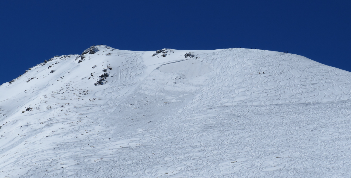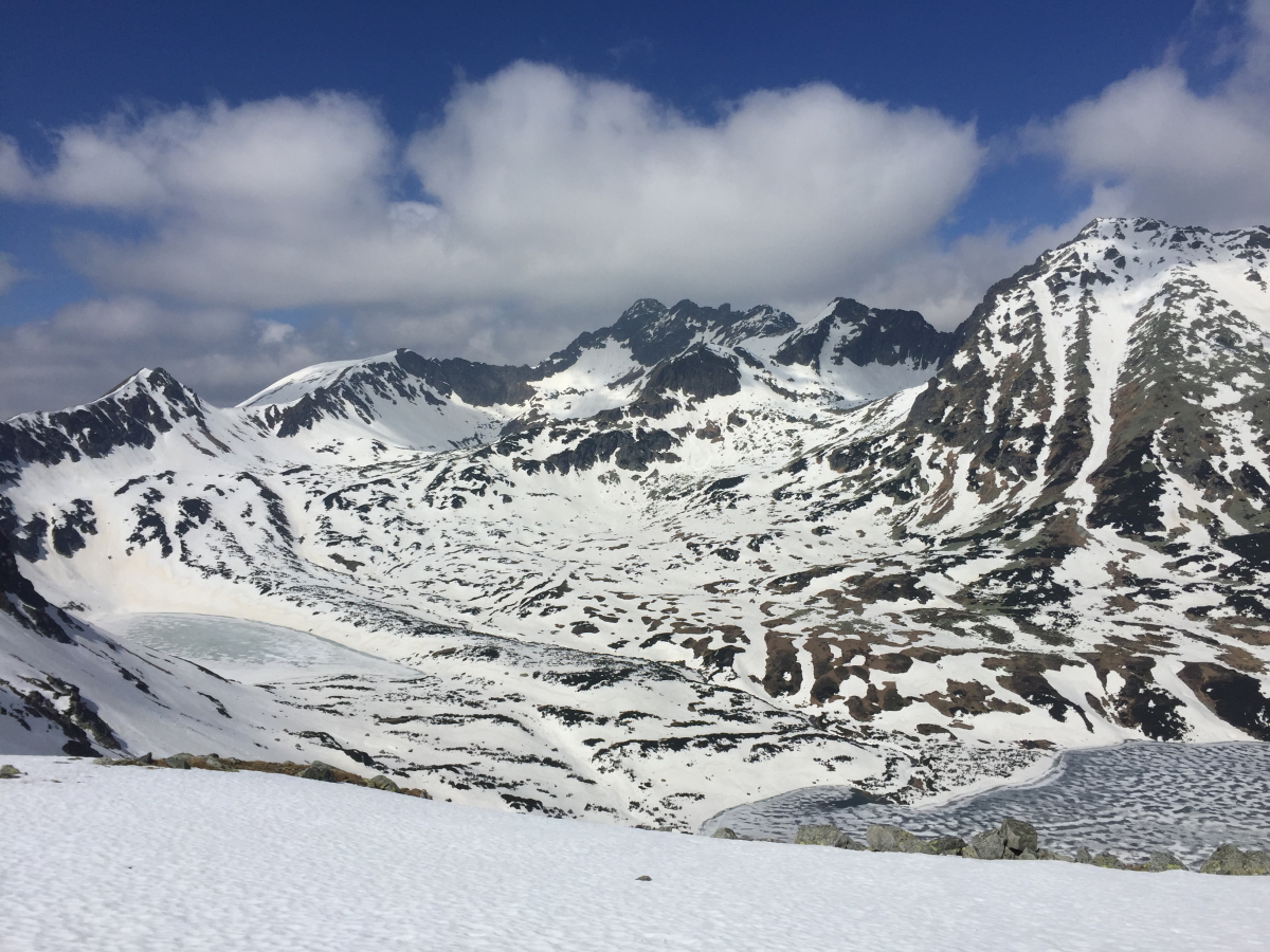 rysa/niżne rysy z dzisiaj - podejście od stawu rano twarde kalafiory po lawinach, po południu zmięk, nizne rysy ok 12 super (no, jak na obecne warunki , równo, fajnie odpuszczony śnieg, rysa ok godz 14-15 górne parę m bardzo twarde, reszta - cześć w słońcu miękki snieg, zacieniona na całej długości twarda i nierówna |